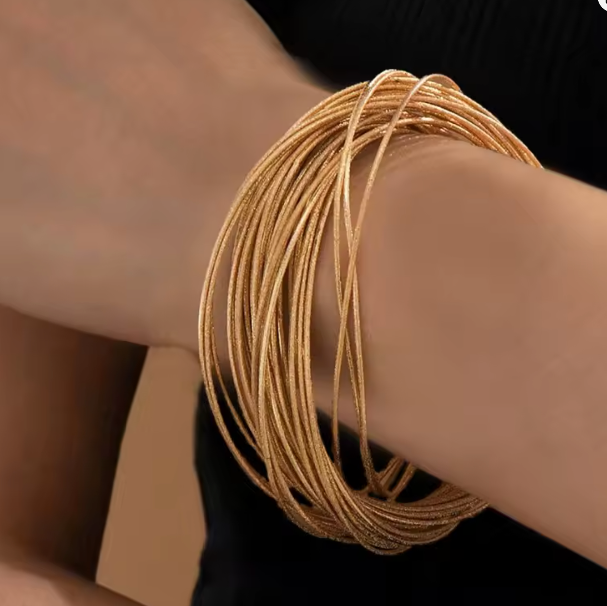 Bracelet multi-rangs dorés, élégant et intemporel, parfait pour illuminer vos tenues.