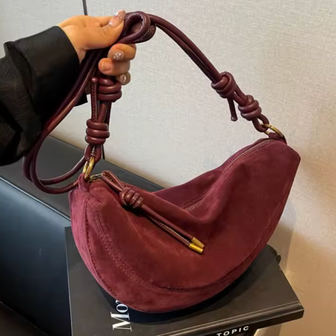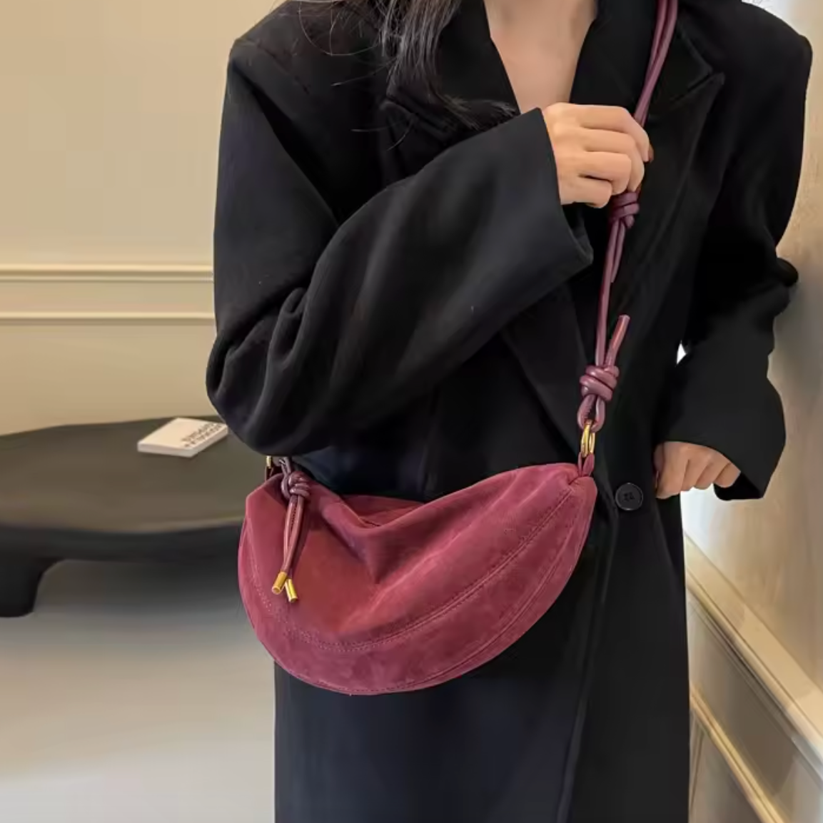 Un sac profond aux reflets rubis, symbole d’élégance et de caractère. Sa couleur bordeaux intense apporte une touche de raffinement audacieux à chaque tenue.